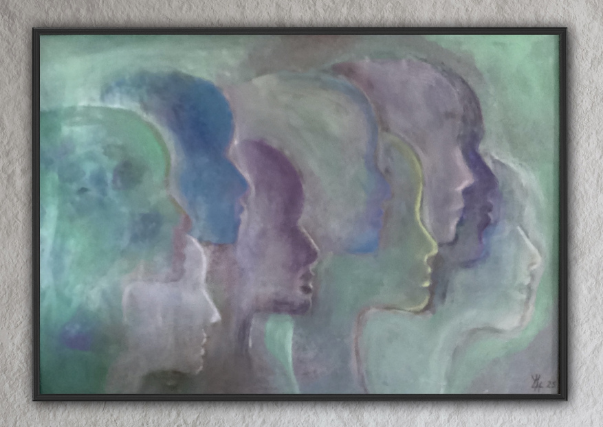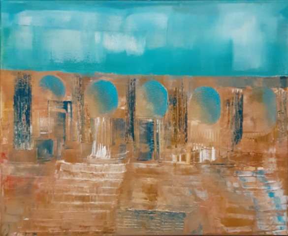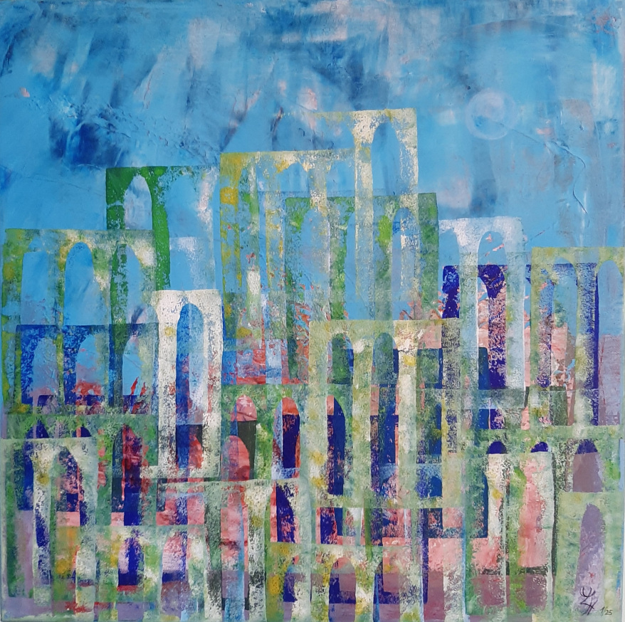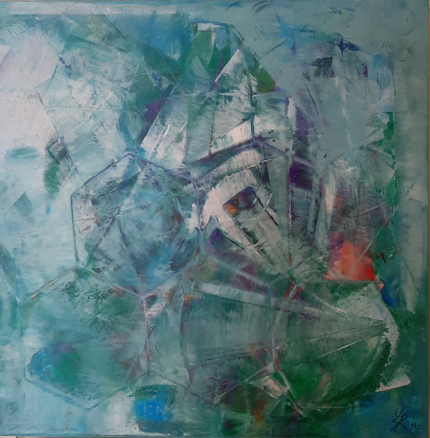 In den abstrakten Arbeiten kehre ich zurück zu den Ursprüngen des Seins, Elementarem, den Atomen, Molekülen, wie wir sie aus Bildern der Wissenschaft kennen. Hier faszinieren mich die Strukturen und Überlagerungen besonders.