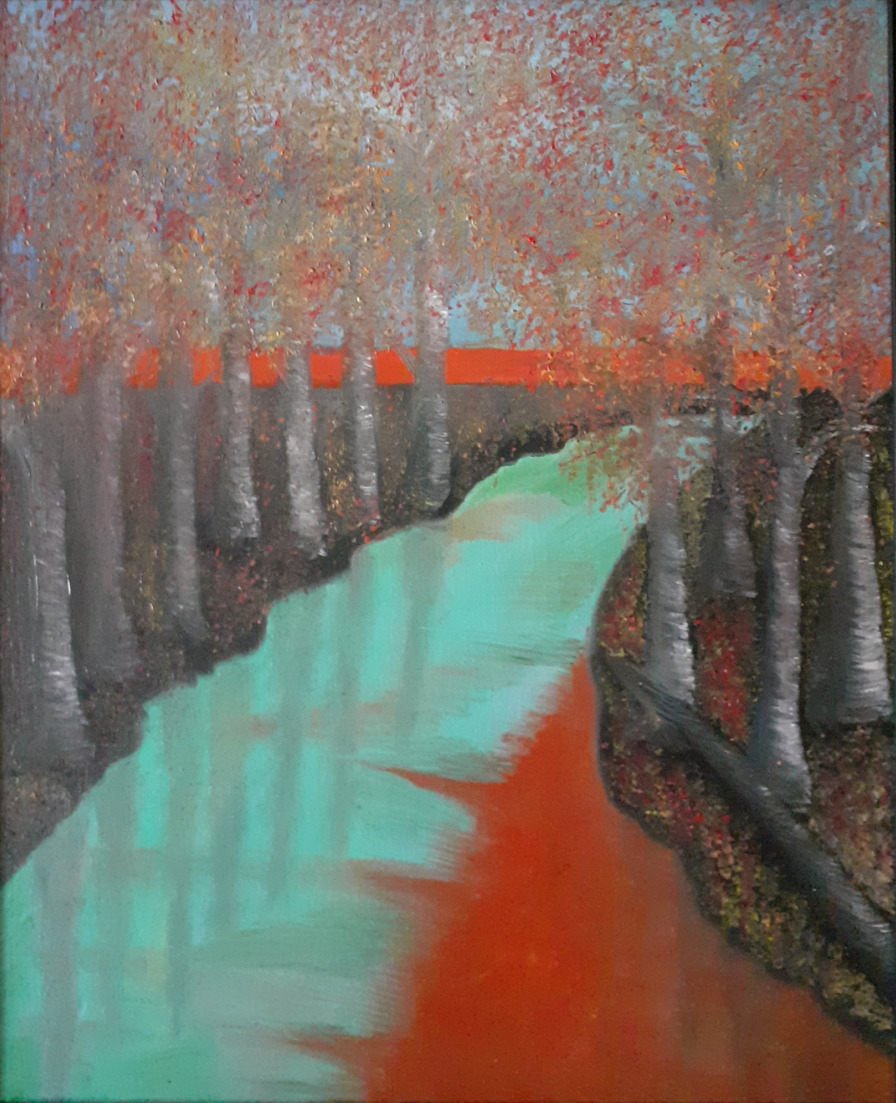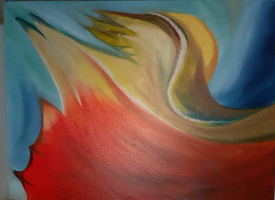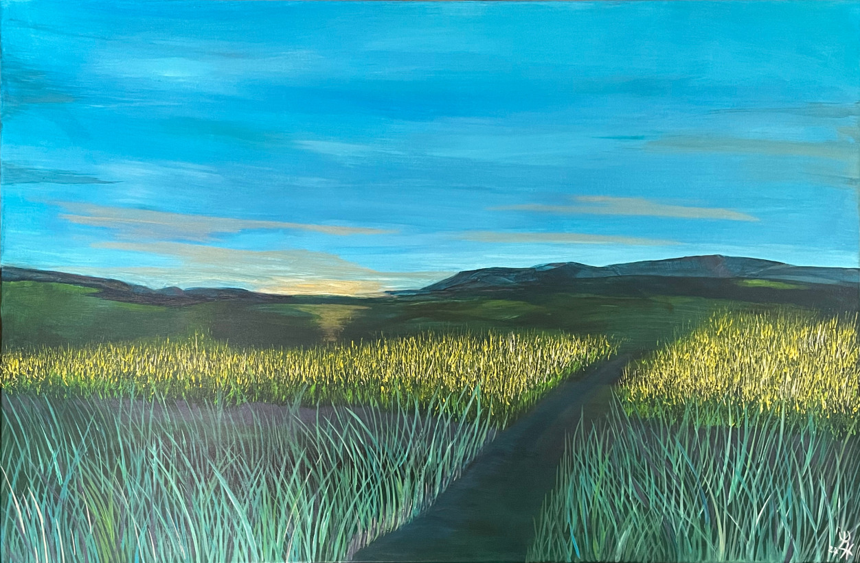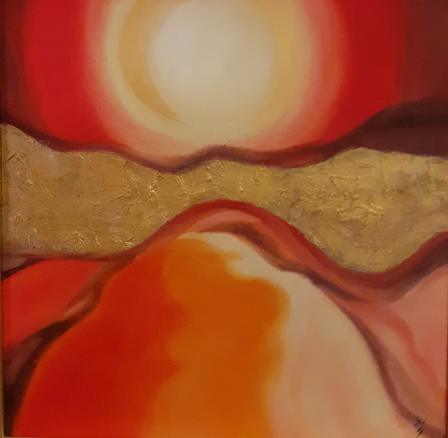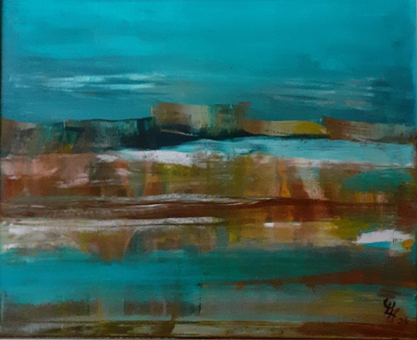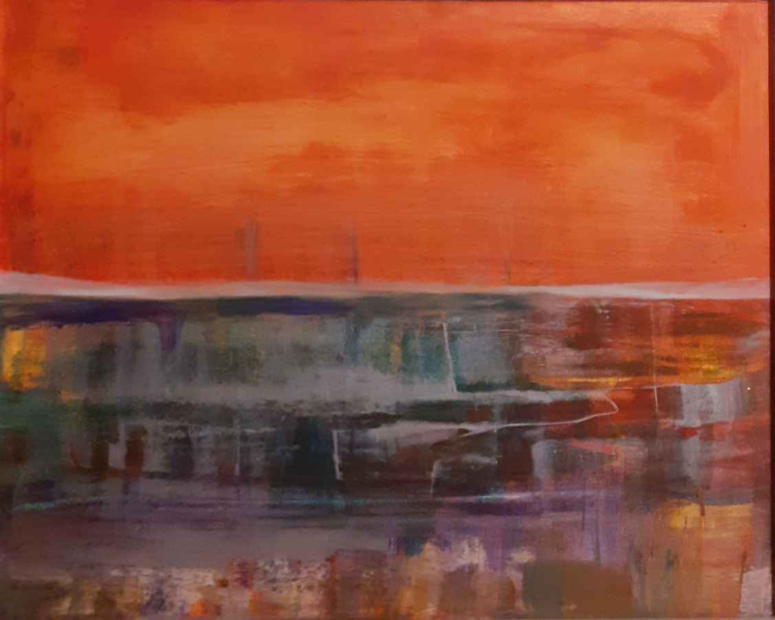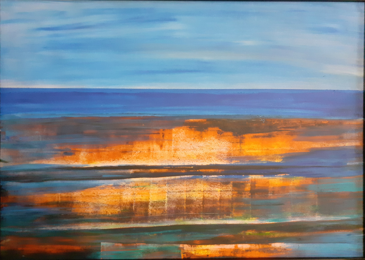 Beim Anblick meiner Malerei hält der Betrachter vielleicht inne, kommt durch die Farben und die horizontalen Linien zur Ruhe und Meditation. Assoziationen zu Meer, unendlicher Weite, Tagesgezeiten, Sonne, Licht und Wasser als elementaren Seinsgrundlagen sollen angeregt werden.