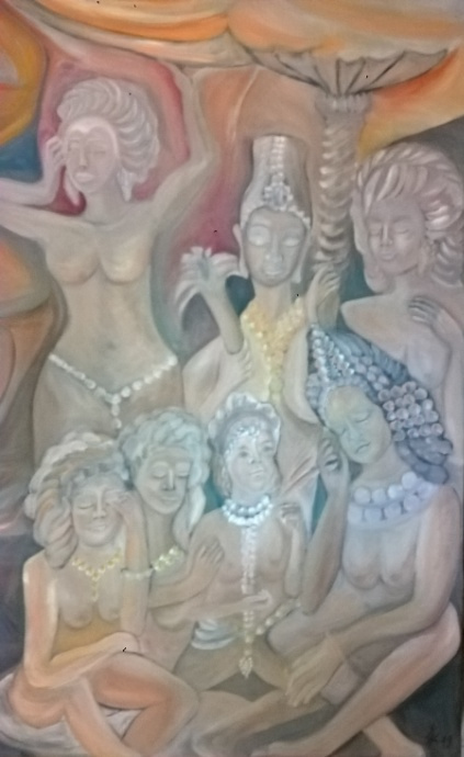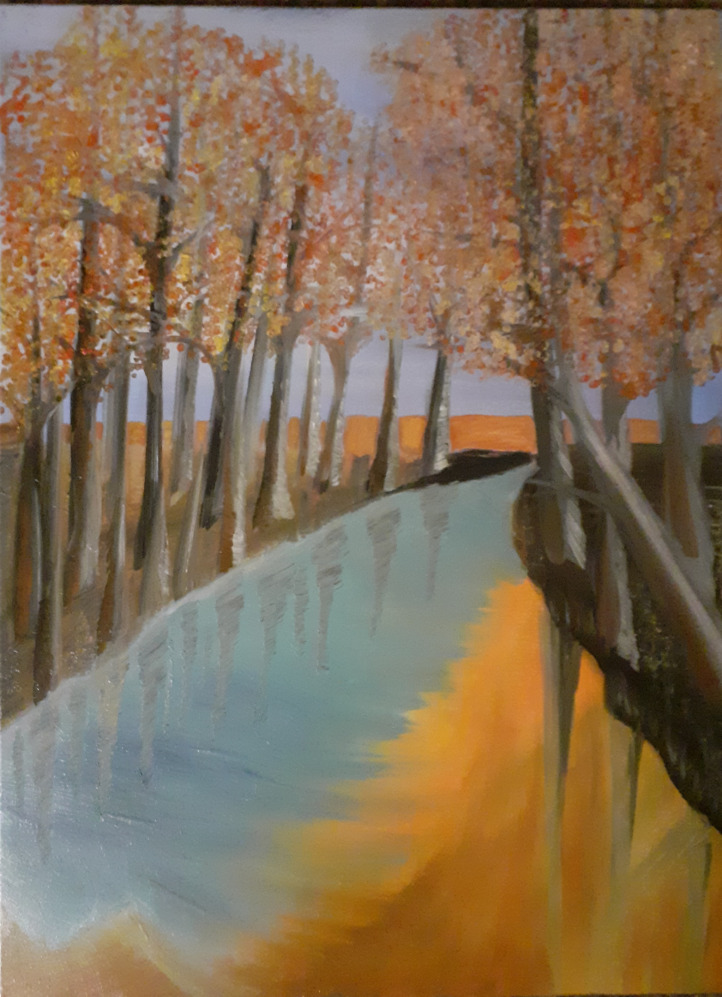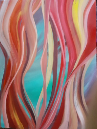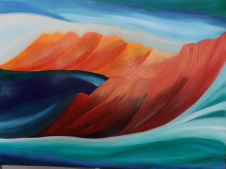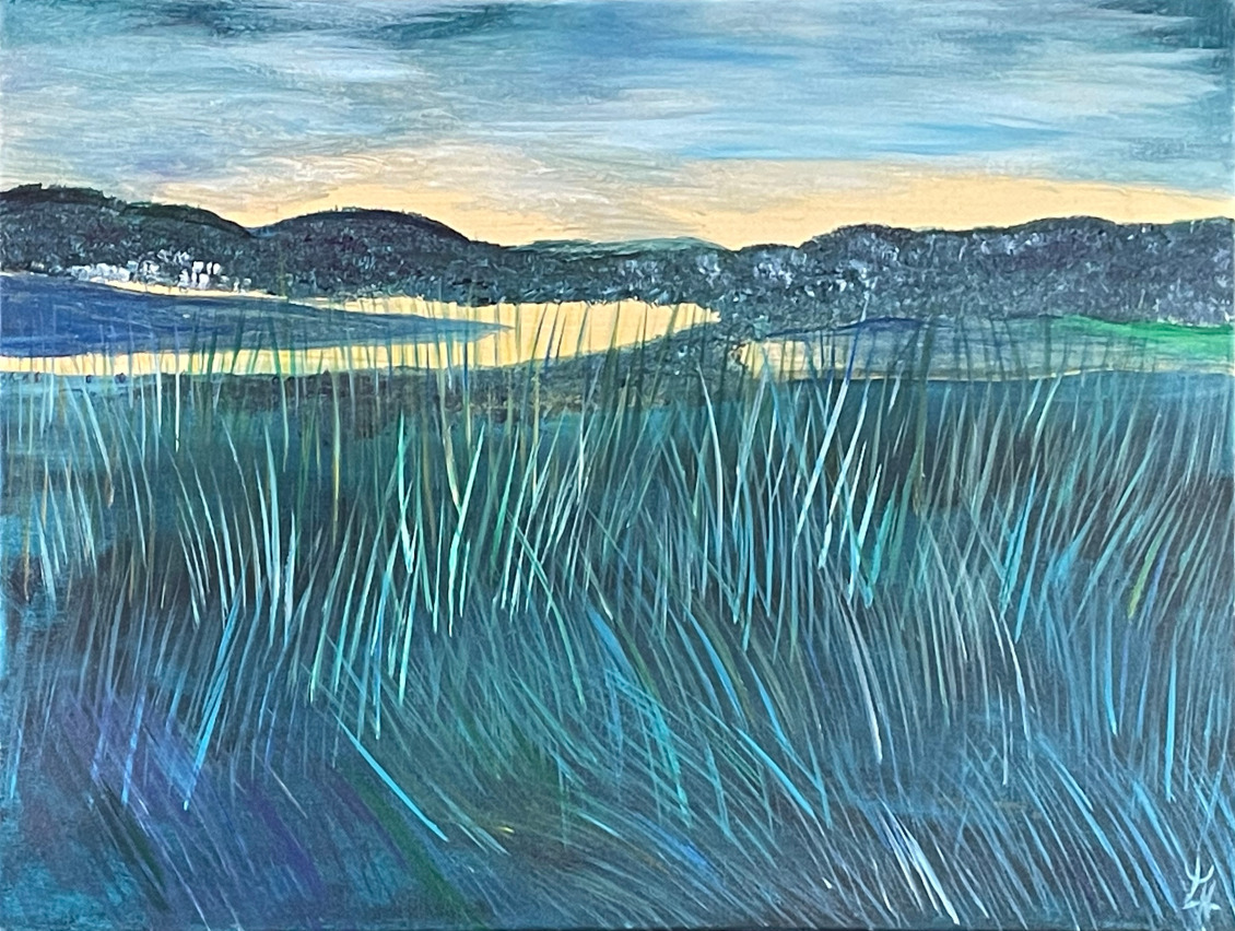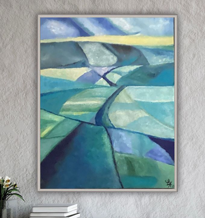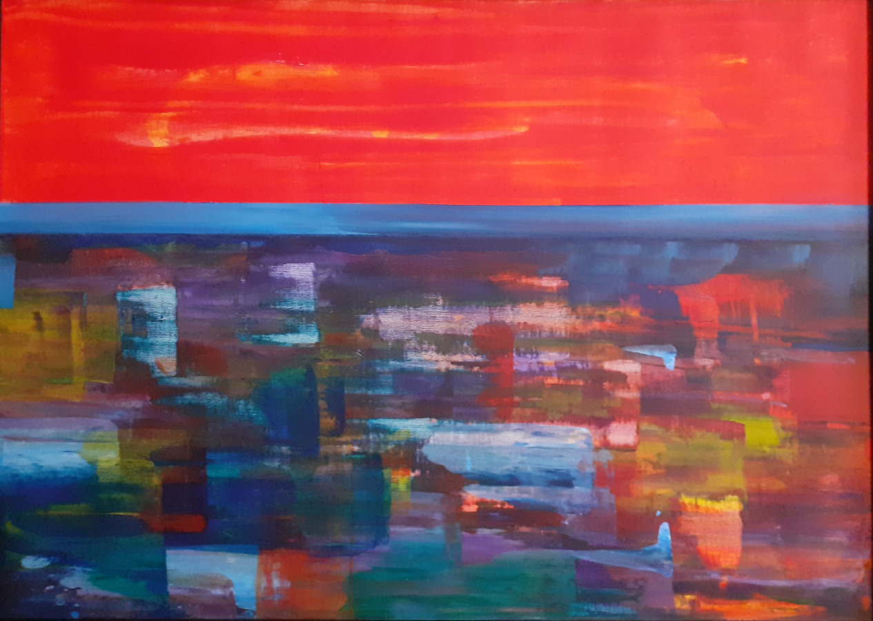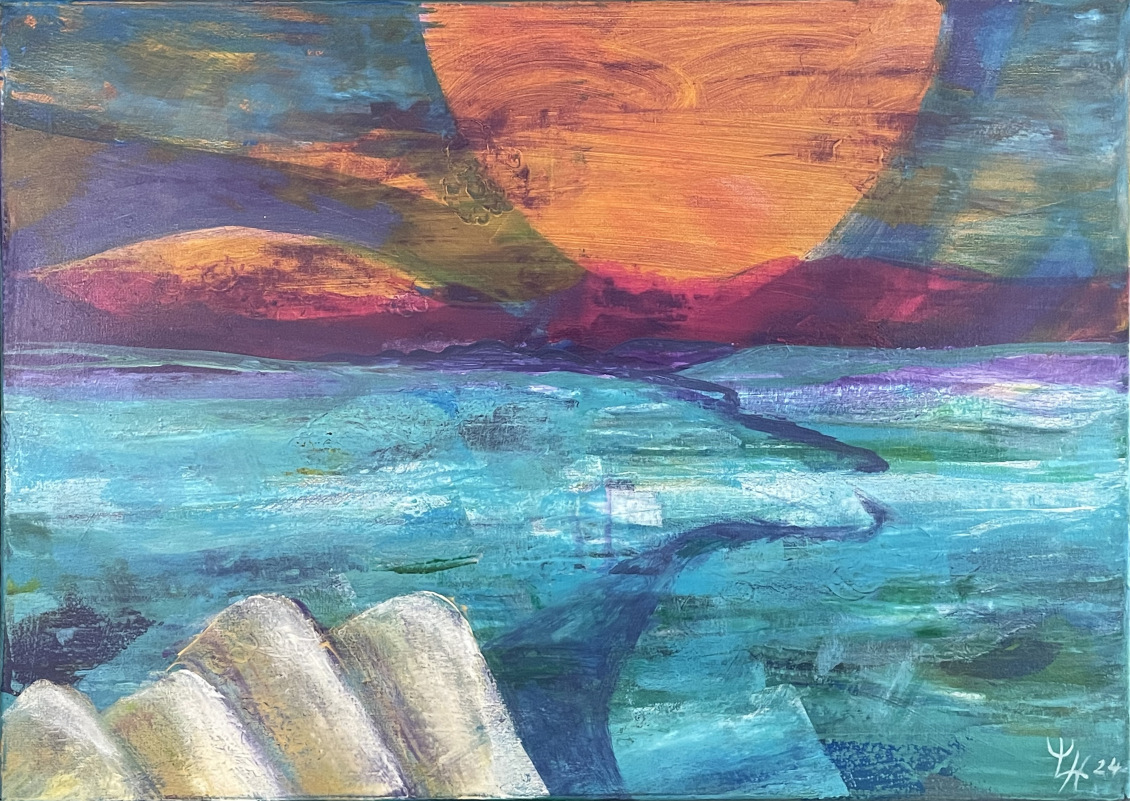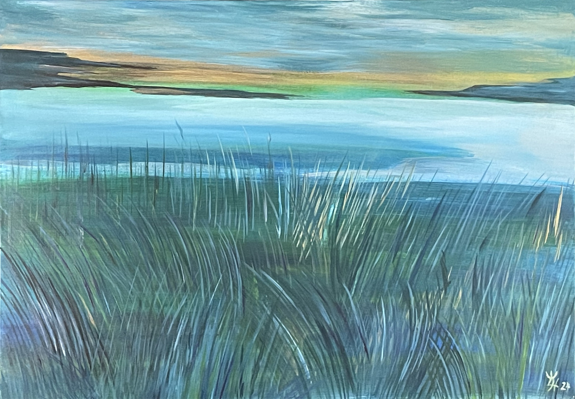 Beim Anblick meiner Malerei hält der Betrachter vielleicht inne, kommt durch die Farben und die horizontalen Linien zur Ruhe und Meditation. Assoziationen zu Meer, unendlicher Weite, Tagesgezeiten, Sonne, Licht und Wasser als elementaren Seinsgrundlagen sollen angeregt werden.