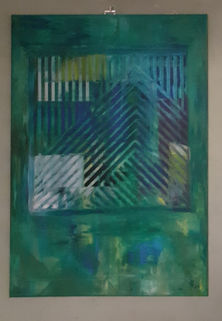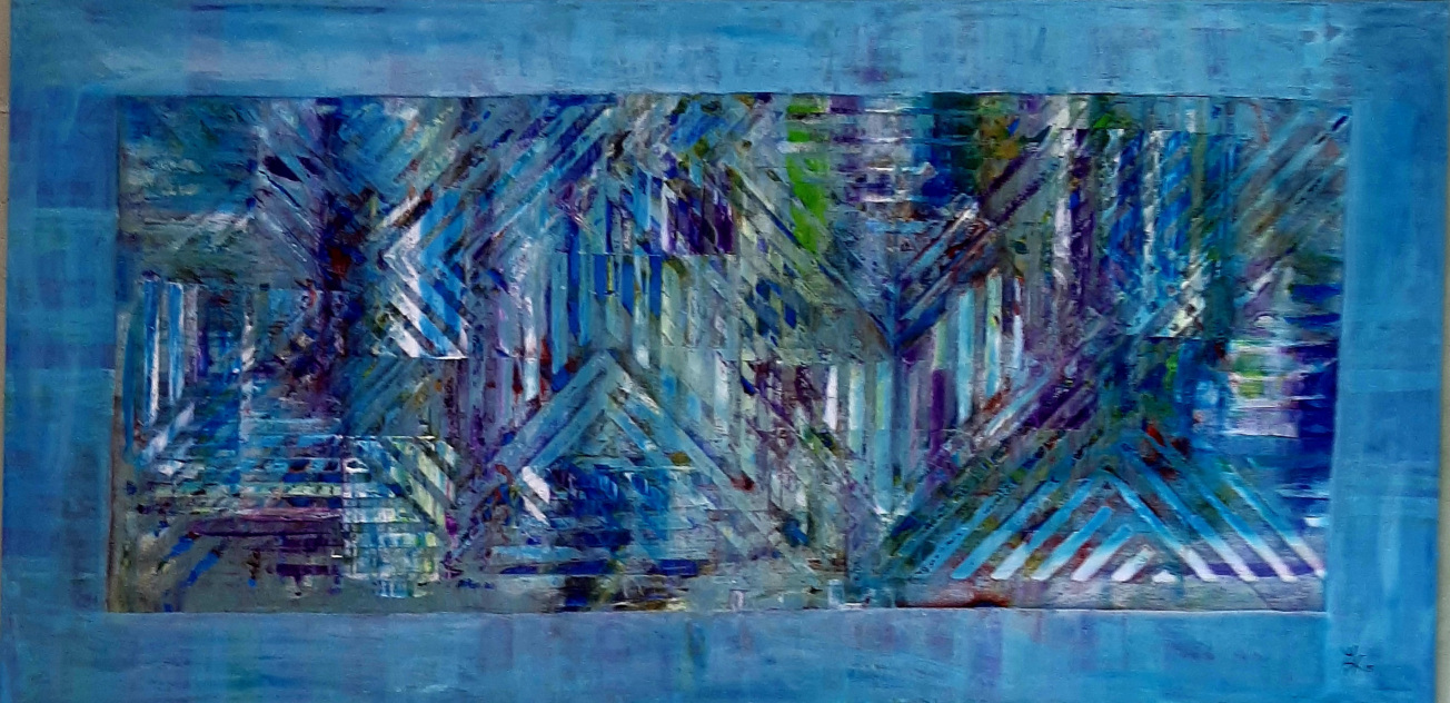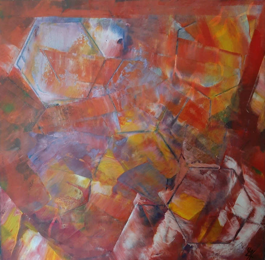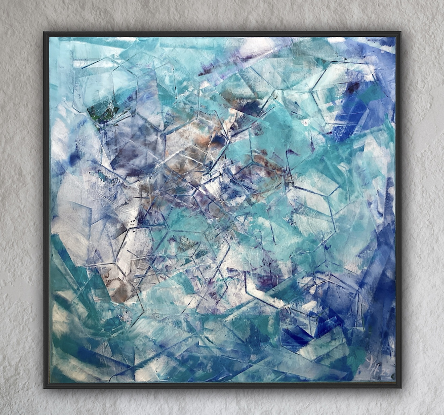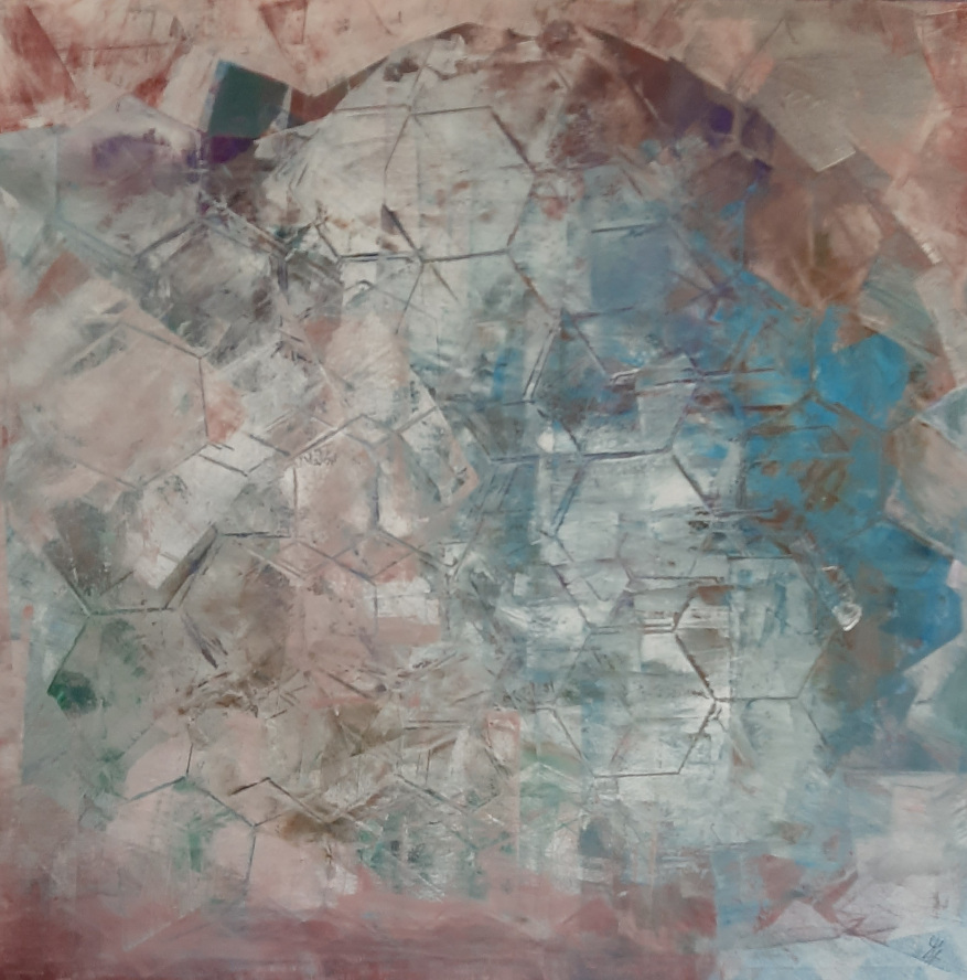 In den abstrakten Arbeiten kehre ich zurück zu den Ursprüngen des Seins, Elementarem, den Atomen, Molekülen, wie wir sie aus Bildern der Wissenschaft kennen. Hier faszinieren mich die Strukturen und Überlagerungen besonders.