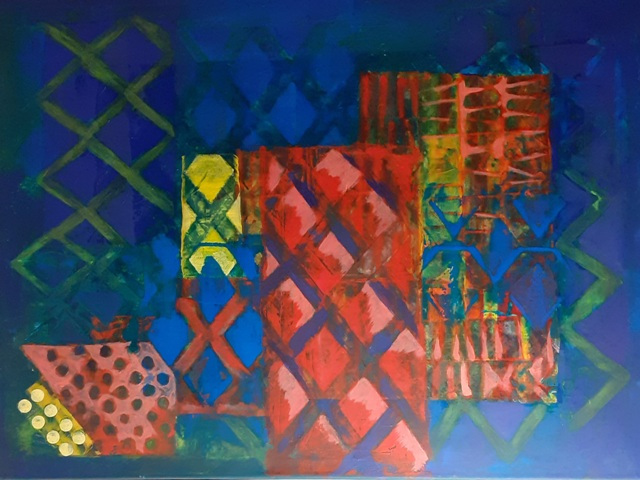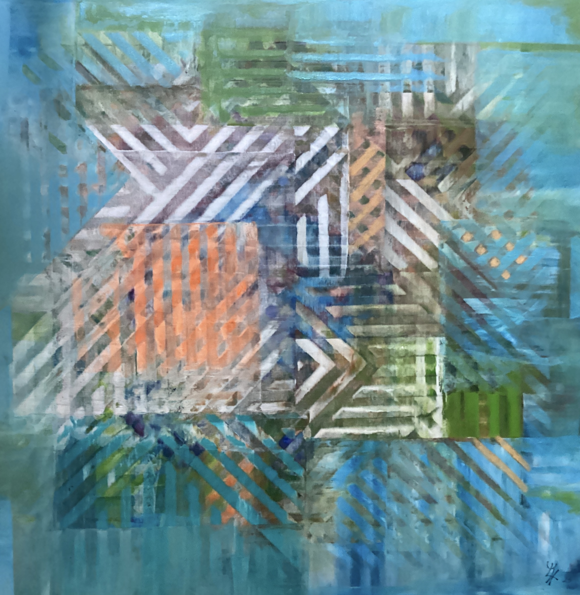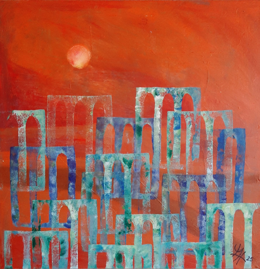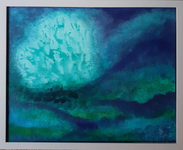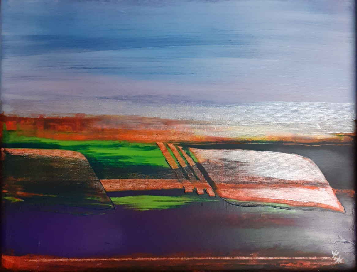 In den abstrakten Arbeiten kehre ich zurück zu den Ursprüngen des Seins, Elementarem, den Atomen, Molekülen, wie wir sie aus Bildern der Wissenschaft kennen. Hier faszinieren mich die Strukturen und Überlagerungen besonders.